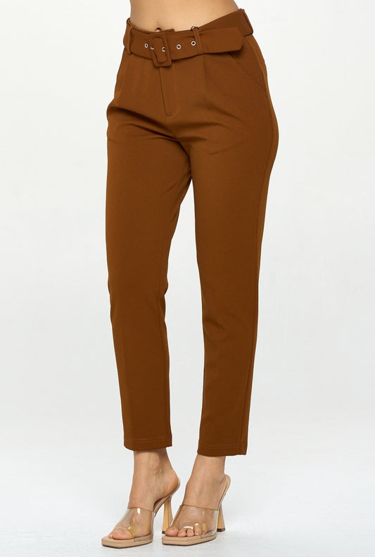 Twill High Waisted Belted Pants- Plus Size