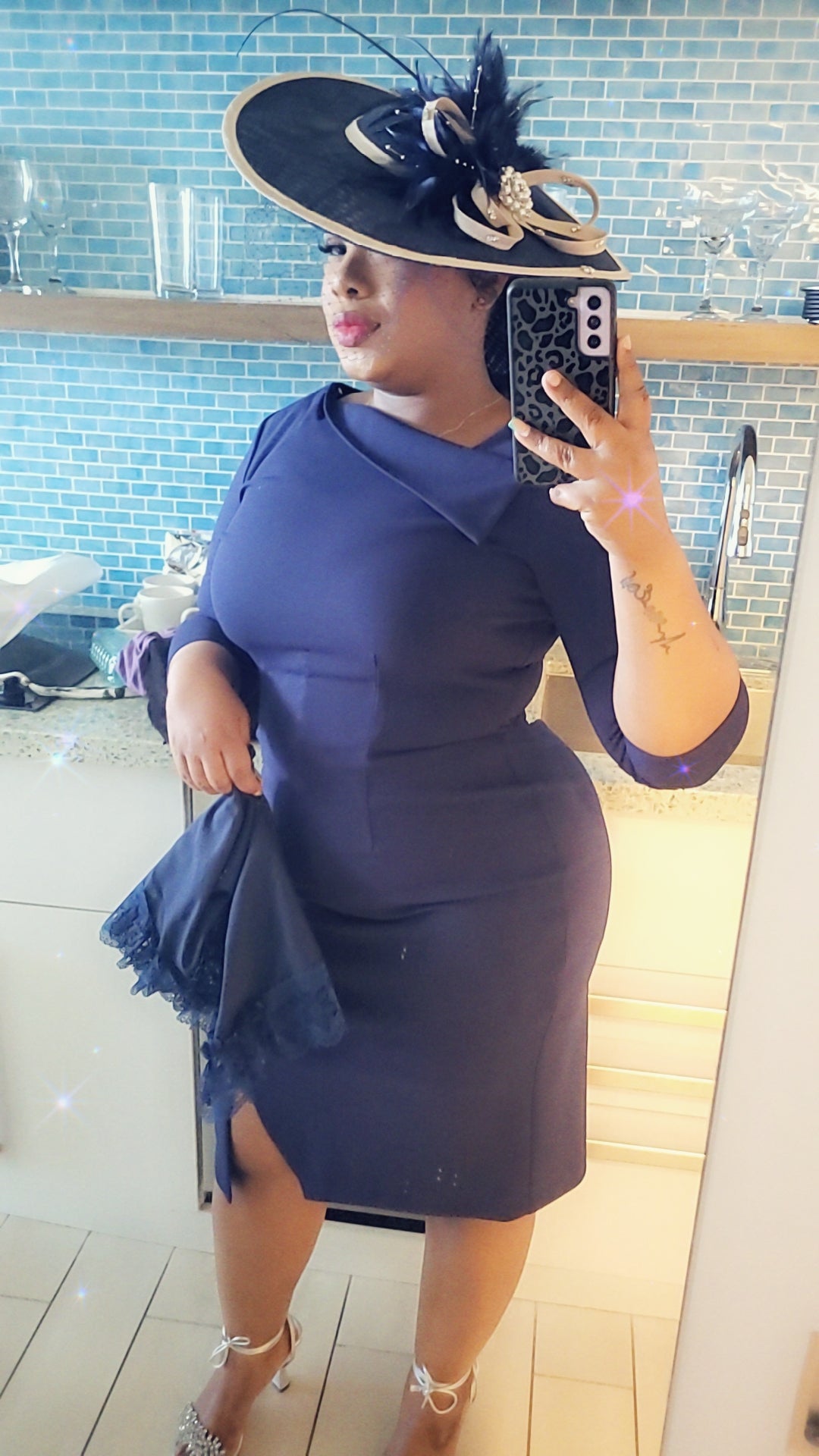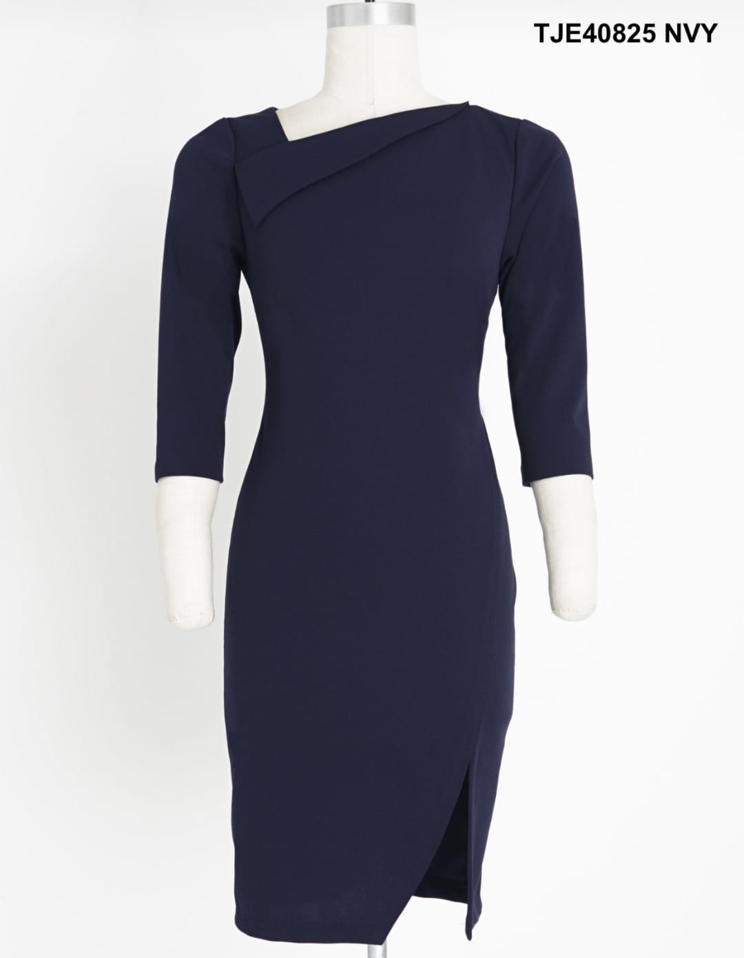 Designed in double-knit fabric that stretches, contours and flatters, it is machine washable and wrinkle free. Style it with red pumps and a top-handle bag for maximum effect.